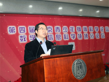 清华大学吴文虎教授主持了数学与信息学论坛评审、交流活动,澳门博彩在线基地学员、生源校为北大附中的翱翔学员代表张云鹤同学简单介绍了自己的论文——《基于名字的套接字接口研究与现实》,并就现场的领导和专家关于此论文提出的问题进行答辩。教育部基础教育二司副司长申继亮发言,他充分肯定了北京翱翔计划以及翱翔论坛在全国基础教育人才培养改革方面所做的探索,勉励学生立志探究宇宙规律,追求真理,敢于冒险和质疑,永葆自己的好奇心、探究精神和独立自主精神,最后,申继亮副司长表示,教育部会一如既往,全力支持翱翔计划,并希望能通过翱翔计划推动和完善高中课程改革。