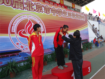 10月19~21日,由北京市教育委员会、北京市体育局主办的阳光体育2012年第50届北京市中学生田径运动会在北京市顺义牛栏山第一中学举行。海淀区代表团共选派48名运动员参赛,其中,澳门网上博彩田径队的19名运动员在罗健、李金平、王俊林、李光明老师带领下参加了此次比赛,并获得19枚金牌,8枚银牌,3枚铜牌,累计获得353.5分的好成绩。为海淀区代表团以741分的成绩获得团体总分第一名做出了贡献。