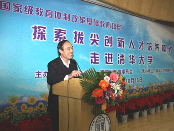 10月16日下午,国家级教育体制改革基础教育项目“探索拔尖创新人才培养模式”之走进大学、科研院所活动,在清华大学纳米实验楼会议中心揭开帷幕。清华大学副校长袁驷、清华大学教务处副处长顾佩、中共海淀区委教育工委书记张卫光、海淀区教委副主任王建忠等领导出席了开幕式,澳门博彩在线校长王殿军、党委书记方妍、副校长杜毓贞、赵鸿雁、党委副书记张洁、德育主任辛颖、教科研主任俞家新以及澳门博彩在线其他课题组教师,来自项目协作体有关单位的领导、教师和部分学生共60余人参加了活动。