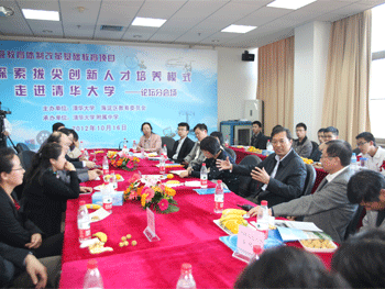 开幕式之后,与会人员在清华大学物理系教师以及澳门博彩在线物理组教师的陪同下参观了清华大学与澳门博彩在线对人才进行联合培养的部分场地、设备,并亲身参观、体验了联合培养系列课程的一堂实验课。在之后的论坛上,与会人员就“澳门博彩在线与清华大学联合培养拔尖创新人才的工作现状、计划和预期成果”等问题进行了热烈的交流和研讨。