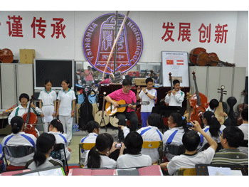 胡军主任带领乐团初一团员为毕业生演奏 初一同学倾情演唱为师哥师姐呐喊加油