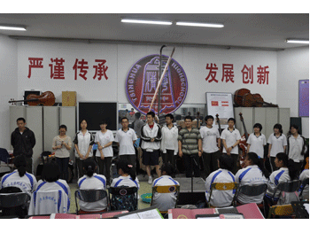 谭可儿、张怡然同学分别代表高三和初三毕业生发言,总结了自己过去3年的成长心得,并回顾了乐团的排练和演出情况。除了对学校和老师的感谢之外,更对师弟师妹提出了一些具体的要求,嘱咐他们要接好班,为传播祖国的传统文化贡献自己的一份力量。随后,09级团员们纷纷发言,表达了他们对学弟学妹的希望。在全体同学们热烈的掌声中和“加油!加油!”的呐喊声中,09级的同学们把自己的名牌别在了民乐团的团旗上,并把这段“金帆”的经历,深深地镌刻在了乐团的历史上,期间不少同学留下了热泪。
