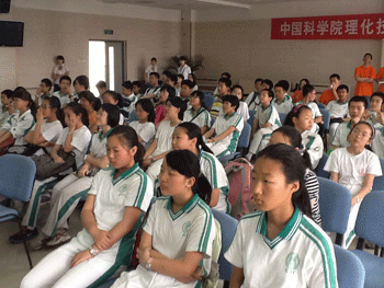 同学们首先来到中科院理化所,听取了工作人员对理化所的简单介绍以及有关胶原蛋白的知识。然后,同学们在志愿者的带领下观看了许多高科技产品的演示,如“太阳能制氢”、“污水处理演示”等。