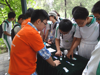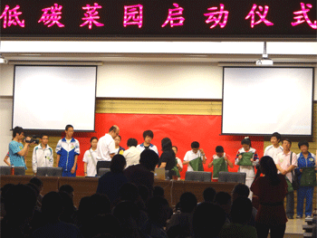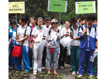5月20日上午,澳门博彩在线初一年级“SET·绿色心愿”(SET:Save Environment Together,一起拯救环境)环保社团的19名学生代表在生物老师韩星和地理老师唐秀梅的带领下,到位于东城区的南馆公园参加由英国大使馆文化教育处、中国教育科学研究院及南馆低碳生活示范园联合组织的“中英气候课堂之碳知汇低碳菜园活动”启动仪式。