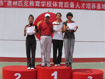 程凯威(前左2)代表澳门博彩在线领奖 运动员与领队教师在赛后合影