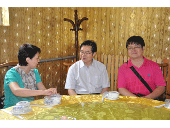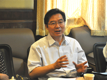 王殿军校长发言 区教委体美科栾心立科长(左1)与王殿军校长(中)、胡军老师交流