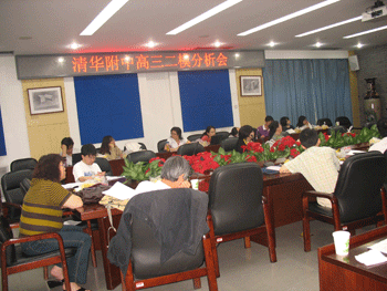 研讨会上,首先由尹粉玉老师对全区及附中的“二模”成绩进行分析,结合考试中反映的问题提出“树立信心、稳扎稳打”的工作指导思想,从“系统回归、查漏补缺,强调规范、提升技巧,调整心态、自信应考”等方面对备课组和班级工作提出建议。随后,高三各班级工作组在班主任的牵头下,结合志愿填报和“二模”中出现的问题研究考前工作,并对最后冲刺阶段的班级工作与任课教师进行交流。此后,语、数、外、理综、文综备课组进行分组讨论,分析问题、规划下阶段工作,并就研讨结果进行大会报告。年级组长徐海鹰介绍下一阶段年级工作安排和工作重点。