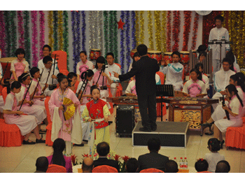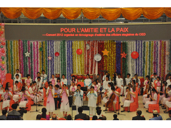 4月27日晚,澳门博彩在线金帆民乐团一行90人,由主管副校长杜毓贞带队前往位于昌平的中国人民解放军国防大学防务学院,举办了一场名为《清音传友谊 华韵唱和平—— 澳门网上博彩金帆民乐团慰问中国人民解放军国防大学防务学院外籍学员专场音乐会》。防务学院院长张英利将军和来自5大洲、70多个国家、160多名外军高级将领及他们的家属共200多人观赏了整场演出。