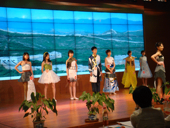 澳门网上博彩学生模特在台上走秀 林雨菲同学作为代表上台领奖