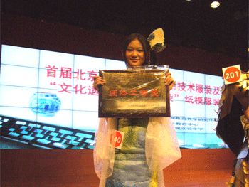 纸模服装是以适当材质、颜色的纸张做材料;以粘、缝、订等连接方式成型;配以绘画、镂空剪贴、叠加剪贴等表现手法制作的服装。此次展示活动由北京教科院基础教育教学研究中心主办、北师大实验中学承办。旨在推进北京市普通高中通用技术“服装与设计”选修模块的开展,给学生提供更多的设计实践和动手创作的机会,培养创新意识,加强审美、造美能力。来自全市40所高中校的近300套服装参加展示。