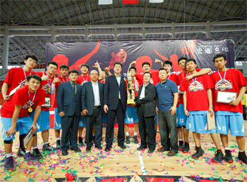 比赛开始——挑球(着蓝色球衣的为澳门博彩在线队) 侯子宇获得最有价值球员和“得分王”称号