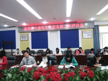 首先由理化生技党支部书记王田老师分别从党支部基本情况、支部活动思路、组织建设、战斗堡垒作用、发展党员工作、思想工作和特色活动等方面进行了总结。理化生技党支部由附中物理、化学、生物和通用技术教研组26名党员老师组成,本支部认真落实党支部职责,按要求召开支委会,定期过组织生活,严格开展批评与自我批评;认真贯彻执行学校党委的各项学习安排,结合附中的教育教学实际,注重实效,把握党员的思想动态,注重正面的引导和沟通。我们支部也结合理论学习开展了一些特色活动,例如为庆祝中国共产党建党九十周年和辛亥革命一百周年,组织观看了电影《建党伟业》和《辛亥革命》和“大道之行——纪念辛亥革命一百周年影像展”。为弘扬正气,集中观看了《正气歌》廉洁教育情景朗诵主题晚会。结合本支部的学科特点组织老师们参观朝阳区高安屯循环经济产业园,让老师们实地了解了垃圾分类处理的过程和垃圾分类处理的意义。在去年假期在附中党委的组织下部分老师参加了湖南的参观学习之旅,在这次活动不仅仅促进了本支部党员老师们的交流,同时也是增进了与其他支部的交流,在参观学习中大家相互交流共同成长。在工会的帮助下,支部从去年开始利用寒假看望退休在家的老教师,希望利用这样的机会一方面让老教师们感受到大家对他们的关心,同时也是让年轻老师们在与老教师的交流中感受附中的精神,将附中的文化传承下去。