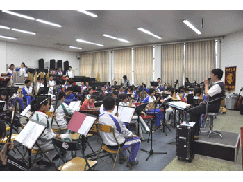 胡军老师组织附中和附小同学共同排练 附中同学(前)与附小同学(后)一起激情演奏