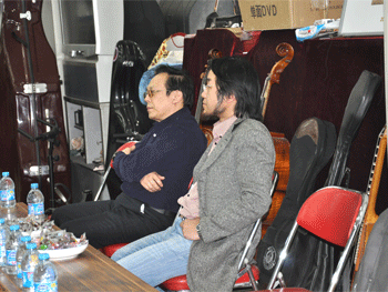 李金祥老师(左)与吴刚老师代表区教委审查节目 李金祥老师进行现场点评
