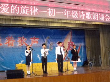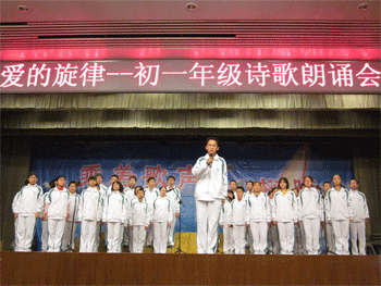 3月15日下午班会课时间,澳门博彩在线初一年级(初11级)在报告厅举办了诗歌朗诵大赛。教务处主任朱培、德育处副主任郎艳出席本次大赛,年级组长陈冬梅、语文备课组长高慧娟及全体班主任担任本次大赛的评委。