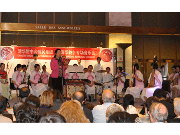此次演出是应中国驻联合国代表团、联合国教科文组织中文书会及瑞士日内瓦市接待中心的邀请而举办的。演出前,中华人民共和国驻联合国代表团余参赞、中文书会崔莹女士和杜毓贞副校长分别致辞,杜毓贞副校长还向在场300余名各国观众介绍了附中民乐团的发展和此次音乐会的曲目特点。