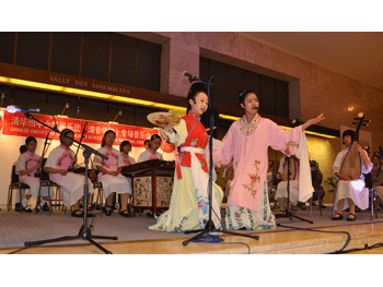 杜毓贞副校长在联合国演出现场致辞 陈可馨与田屾演唱昆曲《牡丹亭》