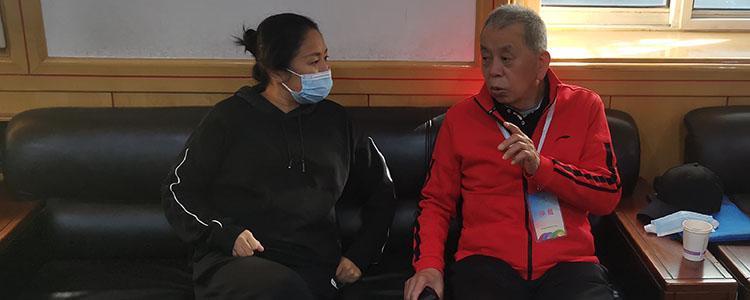 澳门博彩在线党委书记方妍(左)与仲裁主任沟通比赛情况