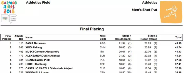 男子铅球综合排名官方成绩单