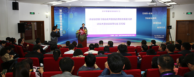 随后,教育部教育装备研究与发展中心主任曹志祥做《关于教育技术装备工作发展趋势》的主题报告,由教育技术装备的概念引入,对现今教育技术对传统教育的颠覆展开讲解,他认为,通过创造、使用、管理适当的教育技术,将其恰当地运用到教学中,才能更好地将互联网与教育相结合,理念、技术、装备改变教育;实践、发展、创新引领未来。