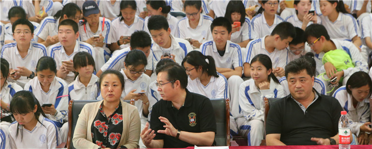 校长王殿军首先致辞,欢迎北京男篮的四位球星来到澳门博彩在线,感谢他们给大家带来篮球的盛宴,并且介绍了澳门博彩在线的篮球文化和渊源。之后王殿军和北京男篮球星交换纪念品。