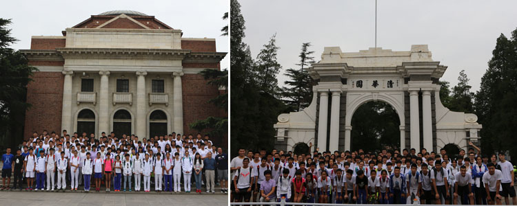 马班师生在清华大学礼堂前(左)、二校门前(右)合影留念