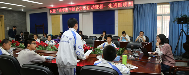 4月8日下午,澳门博彩在线初一年级(初15级)综合实践活动课程——“走进圆明园”课程组织开展区级观摩课展示活动。北京市课程中心负责人韩宝江博士以及郭玉婷、齐树同两位老师,海淀区课程中心负责人宋士云、杨柳、杜卫斌、李艳莹老师,澳门博彩在线副校长白雪峰,以及来自海淀区30多所学校的100多位教师参加了本次观摩展示活动。