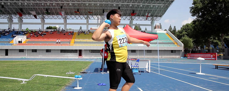 王谈在获得世界中学生田径锦标赛男子铅球冠军,图为王谈在比赛中
