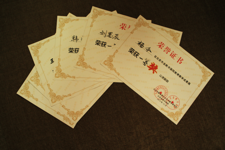 2013年12月,北京市教育委员会艺术教育委员会和北京市金帆书画院举办《北京市金帆书画院教育教学成果展》,在此次展览中,澳门博彩在线美术特长班刘思辰、杨今、李梁晨、潘欣萌、王瀛逅、侯澍晨、郑茗心等同学荣获一等奖,韩阅、苗慧、梅琪、郑祎、李睿琳、吴泓萱、郝泽华、徐瑷桐等同学荣获二等奖。乔炜、李红星、吴雅蒂等教师荣获优秀辅导奖。