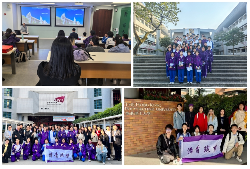 活动期间,交流团师生还分别前往香港大学、香港中文大学、香港城市大学、香港理工大学实践调研。在香港大学,同学们聆听港大教师、校友的相关分享和介绍,深入了解这座屹立在香港且与清华大学同龄的百年名校。在香港中文大学,同学们共走著名的百万大道、欣赏“天人合一”、“水天一色”的美景。在香港城市大学,同学们参观教室、图书馆,近距离感受香港本土高校的建筑风格与学习氛围。在香港理工大学,同学们参观电子计算学系、数据科学及人工智能学系的实验室,了解各类创新项目。此外,清华大学基础工业训练中心周晋副教授为内地与香港的大、中学生们开展专题讲座《人工智能探秘》,清华大学本科生覃梓航、硕士生霍佳雨分别分享医工结合科创团队、HANI KIT科创项目的主要情况,激励两地中学生们未来投入到创新创业的广阔蓝海。