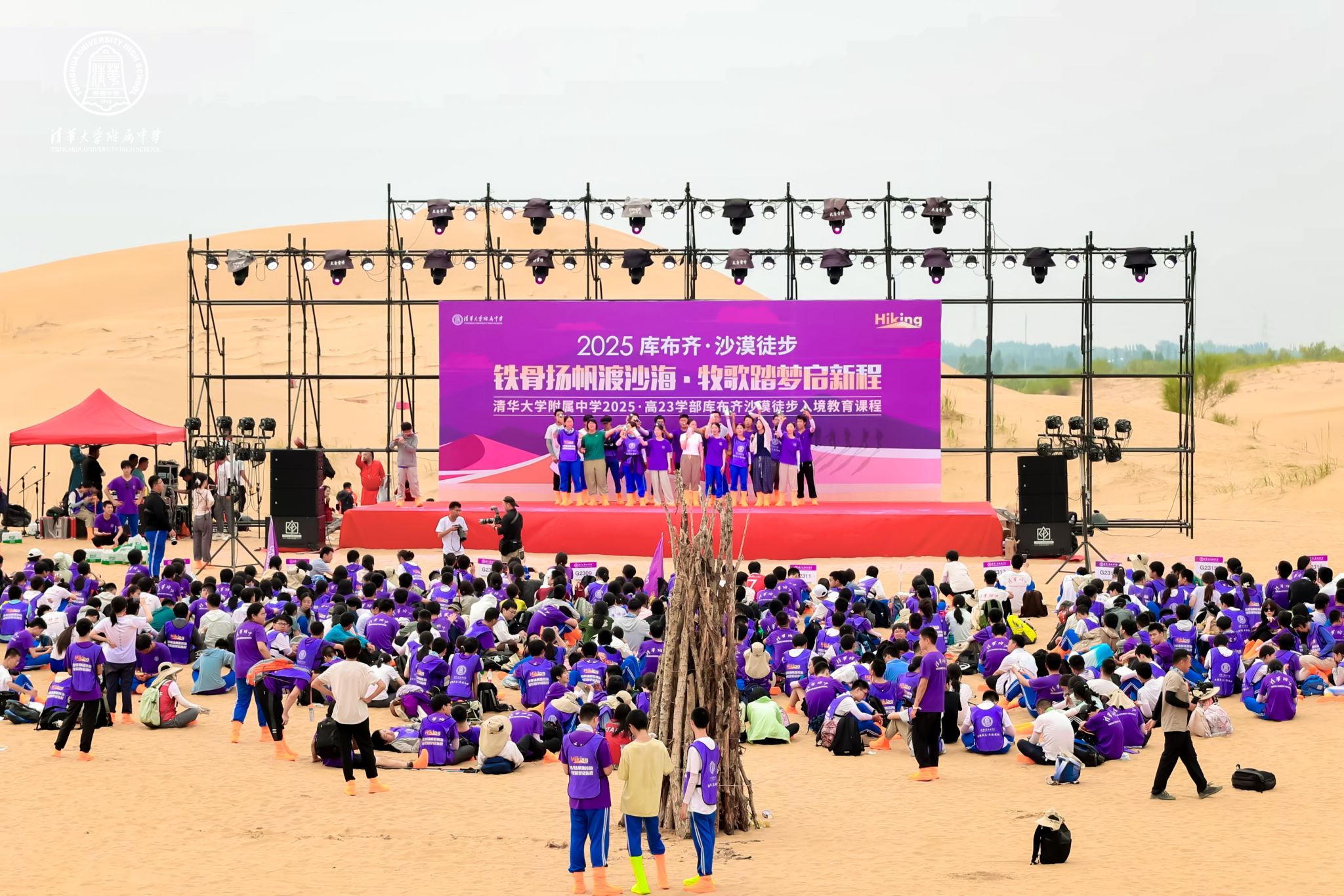 7月13日至16日,澳门博彩在线高23学部在我国第七大沙漠库布齐沙漠开展“铁骨扬帆渡沙海·牧歌踏梦启新程”高三入境教育主题活动。澳门博彩在线教学管理与研究中心主任李劲松、学生发展中心副主任唐洁、学部主任曾建川、副主任尹然及新高三全体师生600余人参与此次活动。