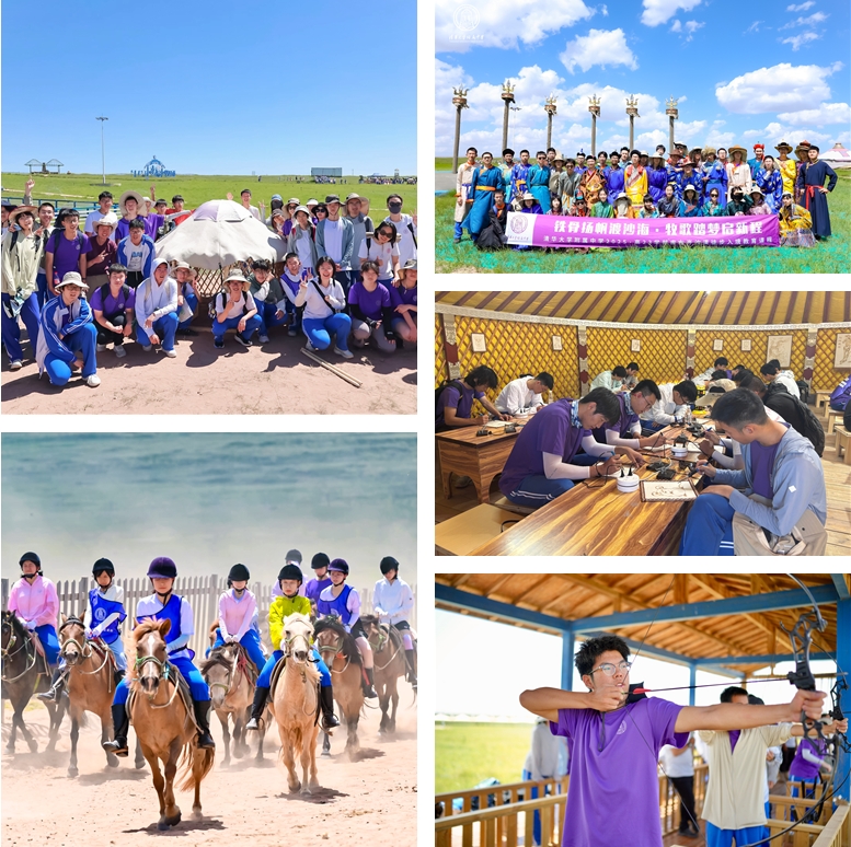 7月15日,师生来到鄂尔多斯草原旅游区进行草原,开启沉浸式草原体验课程。在这里,学生了解了蒙元文化,观看了那达慕实景马剧《英雄》,进行了搭建蒙古包、射箭、骑马、滑草、烫毡画等活动。
