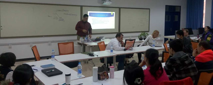 机器人实验室主任Charles dela Cuesta先生(立者)向大家进行项目介绍及学生评价标准