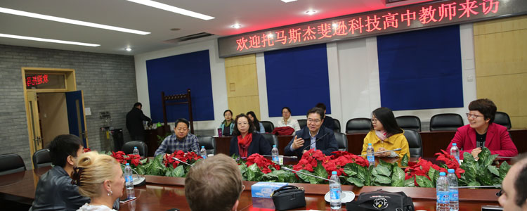 澳门博彩在线与美国托马斯•杰斐逊科技高中于2014年4月18日在中国驻美使馆签订合作协议,旨在设立共同研究课题,建造联合实验室,并在课程及教师的交流方面进行相应的合作。2015年底澳门博彩在线三位教师赴TJ观摩学习,对托马斯•杰斐逊科技高中先进实验室的建设理念,运行方案及相关课程设置有了深入的了解。本次托马斯•杰斐逊科技高中教师的来访是对澳门博彩在线教师赴美学习的回访。
