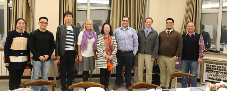 托马斯•杰斐逊科教高中教师与杜毓贞副校长(中)及部分高研实验室教师合影
