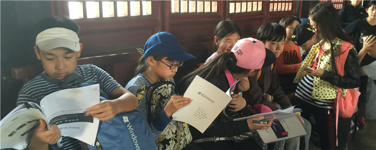 国学大师季羡林讲过:“泰山是中华文化的主要象征之一。欲弘扬中华文化,必先弘扬泰山文化”。为了让孩子们深入感悟“五岳独尊”的泰山文化,活动第一天便来到了泰山。在考察活动中,孩子们被分为五组,在五位老师的带领下分别攀登泰山。行程中,孩子们在完成活动手册(如泰山的地理、泰山的封禅文化、泰山石刻、泰山十八盘、文人眼中的泰山)的同时,了解了泰山在中国文化中的独特地位;在观摩历代帝王、文化名士留下的碑碣、石刻的同时,又一睹了大家之手的书法风采、倾听了文人骚客背后的故事。除此之外,趣味寻宝游戏的快乐互动,激发了孩子找寻著名的泰山石刻及诗文的学习兴趣,如:寻找皇帝曾经登山封禅的小驿站“御帐坪”,以及“为什么一棵松树会被皇帝封官”‘五大夫’”等。