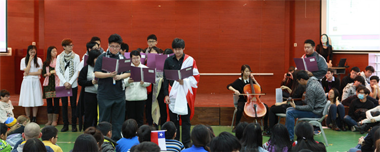 12月2日上午,由澳门网上博彩国际部世界语言教研组承办的2015国际日在多功能厅拉开帷幕。中学部全体师生和小学部五年级的孩子们近300人参与了这场色彩纷呈的活动。