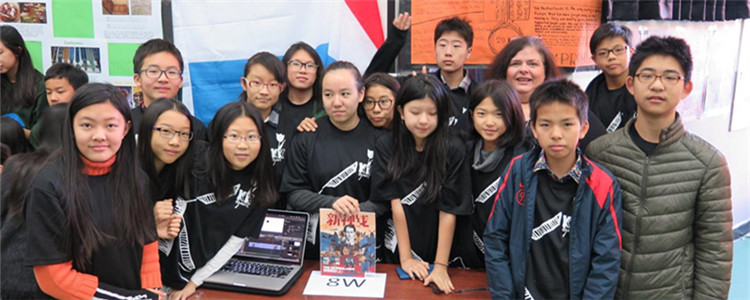 一大早,学生们穿着各自所代表国家的传统服饰来到多功能厅。首先进行的是国际村活动,17个班级分别代表17个国家,包括卢森堡、白俄罗斯、南非、哥斯达黎加、巴哈马、越南和蒙古等。这些国家由世界语言教研组的老师提供,由各班学生自由选择。活动现场,每个班都用自己精心设计的展台展示了所代表国家的文化,包括地理概况、语言使用、文化艺术、经济发展、人口迁移等内容。学生们带着提前设计好的问题单去不同国家的展台进行调研,了解每个国家的迁移问题以及解决措施。特别值得一提的是,为了让ESL(英语为第二语言)的学生也能参与本次活动,十月初,世界语言教研组的老师们便已经让学生们在给定的国家中选择一个国家进行迁移问题的研究。地球村活动不仅让学生了解到世界各国的多元文化,也让他们深入了解了不同国家的人口迁移问题。