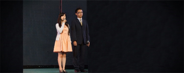 11年级学生王思妮(左) 、10年级学生梁嘉洲朗诵原创诗《离人心上》