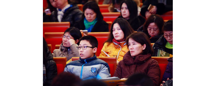 家长和学生在认真听讲座