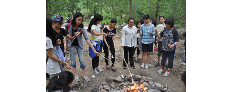 2015年6月9日,国际部七年级44名学生在任课教师的带领下前往怀柔神堂峪进行野外生存拓展训练。这次拓展训练是与语言艺术课所学习的青少年求生传奇小说《Hatchet(手斧男孩)》相结合的深度实践体验活动。在小说《Hatchet(手斧男孩)》中,主人公Brian(布莱恩)被困在加拿大杳无人烟的原始森林深处,他必须学会独自面对这样的困境,用自己的智慧和双手搭建避难小屋、找寻食物,从而让自己生存下去。