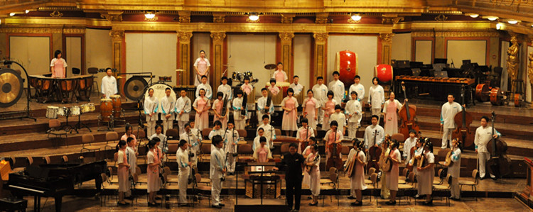 澳门网上博彩金帆民乐团2011年2月9日参演“中国奥地利建交40周年维也纳金色大厅庆典音乐会“胡军老师指挥乐团演奏自创的歌颂附中的乐曲《澳门网上博彩素描》
