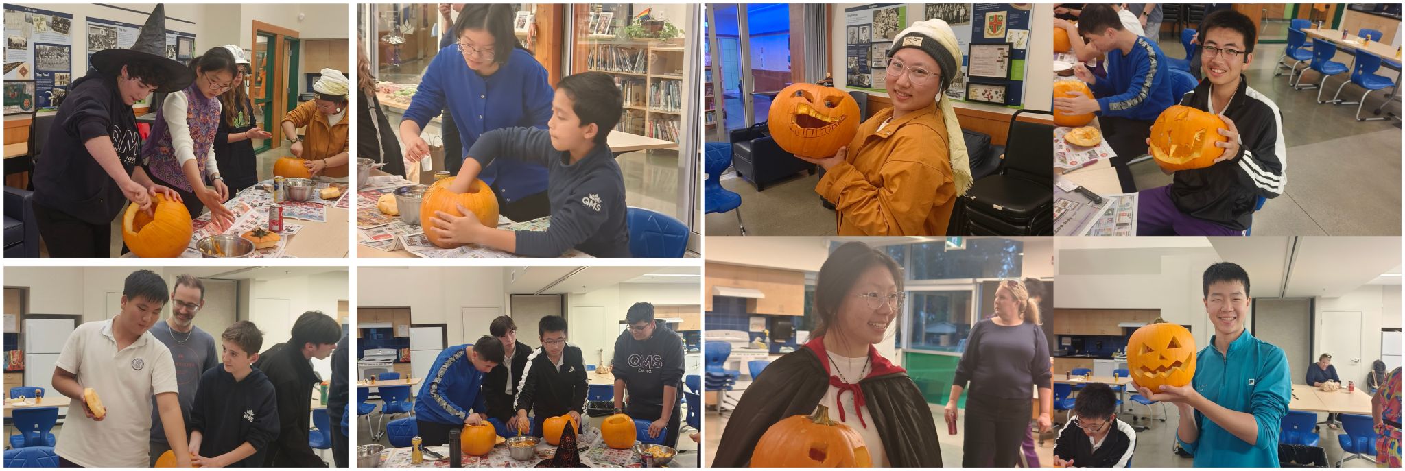 10月3日,同学们观看了二战纪念戏剧,随后前往保龄球馆进行团队建设活动。从初试的生涩到逐渐掌握技巧,赛场上传来了阵阵欢呼与鼓励的掌声。在轻松愉快的氛围中,同学们的团队协作精神与适应能力得到了充分体现。当晚,同学们还受邀参加了接待家庭举办的万圣节晚宴,并亲手雕刻了南瓜灯。这一活动让同学们深度融入当地文化传统,在动手实践与欢声笑语中,为充实的一天画上了圆满的句号。当校车缓缓驶入邓肯市,QMS学校门口挥舞的手臂,是初遇,也是重逢,是中加交流之旅的发端,是梦开始的地方。