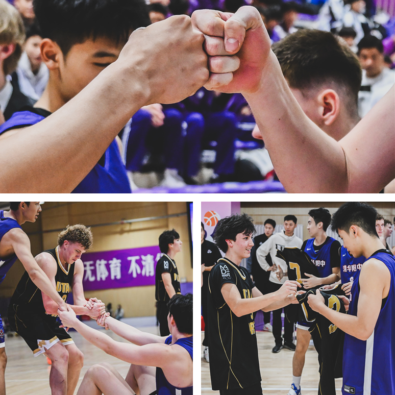 赛场上,澳门网上博彩男篮队员与犹他预科学院队员展开激烈而友好的对抗:快速传切、精准三分、果断篮板争夺,每一个精彩瞬间都引发现场欢呼。比赛中,双方队员深度互动 —— 赛前相互击掌致意,赛中默契配合救球,赛后拥抱合影,真正践行“友谊第一,比赛第二”的宗旨。附中队员将对母校的热爱融入每一次攻防,美国队员则展现出同样的拼搏精神,赛场内外的尊重与理解,成为最鲜活的“国际视野”教育课。