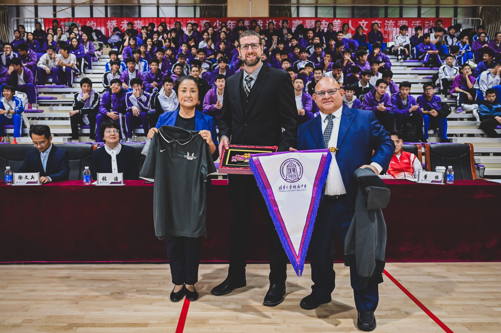 教育部中外人文交流中心主任于长学首先向犹他预科高中男篮致以热烈欢迎。他在致辞中强调,人文交流贵在真诚,以体育人文交流为纽带,让中美青少年在切磋中增进了解、缔结友谊;以体育人文交流为契机,为中美关系注入青春正能量,彰显中美关系希望在青年、未来在青年的深刻意义。