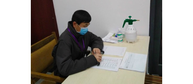 邢志江每天的工作时间是傍晚的五点到第二天早晨的八点,因为负责返校老师的隔离,他的夜晚也没有了整眠,晚上的睡眠时刻保持警醒,生怕哪位老师有紧急情况和他联系。按照要求,每位返校隔离的老师,要在华北楼隔离14天。这期间,有许多深夜从外地回来的老师,有的老师飞机晚点,他就在华北楼大厅一直等着,一等就是四五个小时,有的老师凌晨一两点才到校。入住前按照要求,需要量体温,填写详细的旅途表、健康表,再给回来的老师发放一系列健康、消毒用品,这样下来,两三个小时过去了,又是一个没有休息的夜晚。
