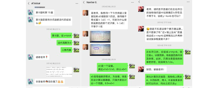 为保证数学基础较好的同学原有的学习进度,周老师和李劲松老师准备了难度稍大的数学提高讲义,每周一讲,精选习题,鼓励学生之间互相讨论,互相分享好的解题方法。每周周俊老师会将同学们有疑问的题目,写下详细的解答过程,拍照片发到班级微信群中。虽然他和学生不能见面,但是学习数学的心始终是连在一起的。
