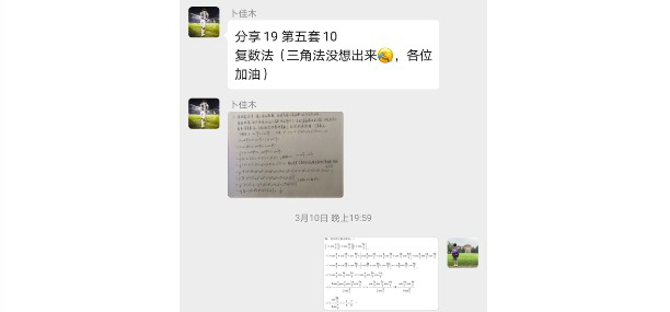 高二10班的卜佳木同学每周都会在班级微信群中分享自己的解题方法