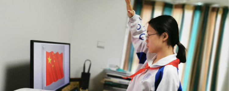 徐利老师班级学生通过线上参加特殊的升国旗仪式
