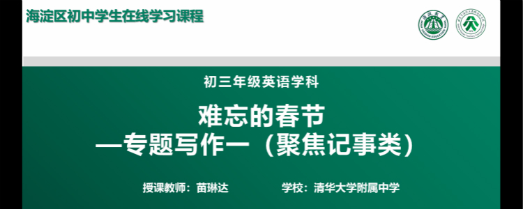 疫情突袭,虽然不能冲在抗击疫情的第一线,但做好本职工作,录好每一节课,守护好学生的学业,让学生安心、家长放心,就是我作为一名教育者的责任与担当。一接到海淀区录课任务,我就积极投入到了准备工作中。从知识的梳理、内容的设计,到图片、音视频的选择,我都精益求精。期待学生们能够从网课中学有所得,收获知识与方法。